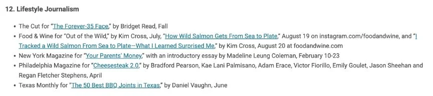 The American Society of Magazine Editors announced nominations for the 2026 National Magazine Awards this spring. “Out of the Wild: I Tracked a Wild Salmon from Sea to Plate” was named one of five finalists in the Lifestyle Journalism Category. The print feature ran in the June 2025 issue of Food & Wine magazine. The online version (with sidebars) ran August 20, 2025. And the Instagram reel (edited by F&W’s digital team) ran August 20.